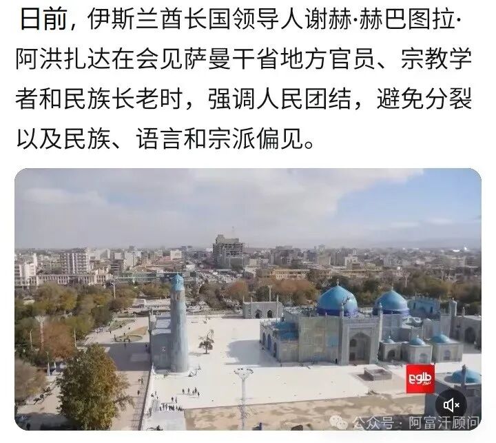 综合最近阿富汗媒体报道,阿富汗伊斯兰酋长国领袖海巴图拉.阿洪扎达最近出行西北和北方各省,相继已经访问了古尔省、法里亚布省、萨曼甘省和朱兹詹省。但新闻报道仍没有公开领袖本人出行和会议的现场照片或视频。