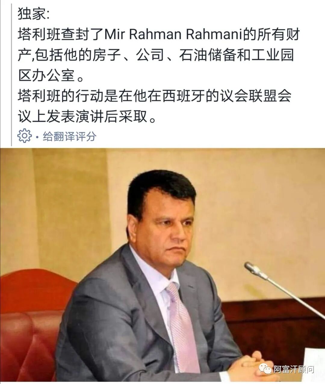 昨日,有社交媒体爆料称,阿富汗塔利班当局查封了前政府时期议长拉赫曼.拉赫曼尼的全部资产。经求证,确有其事。
