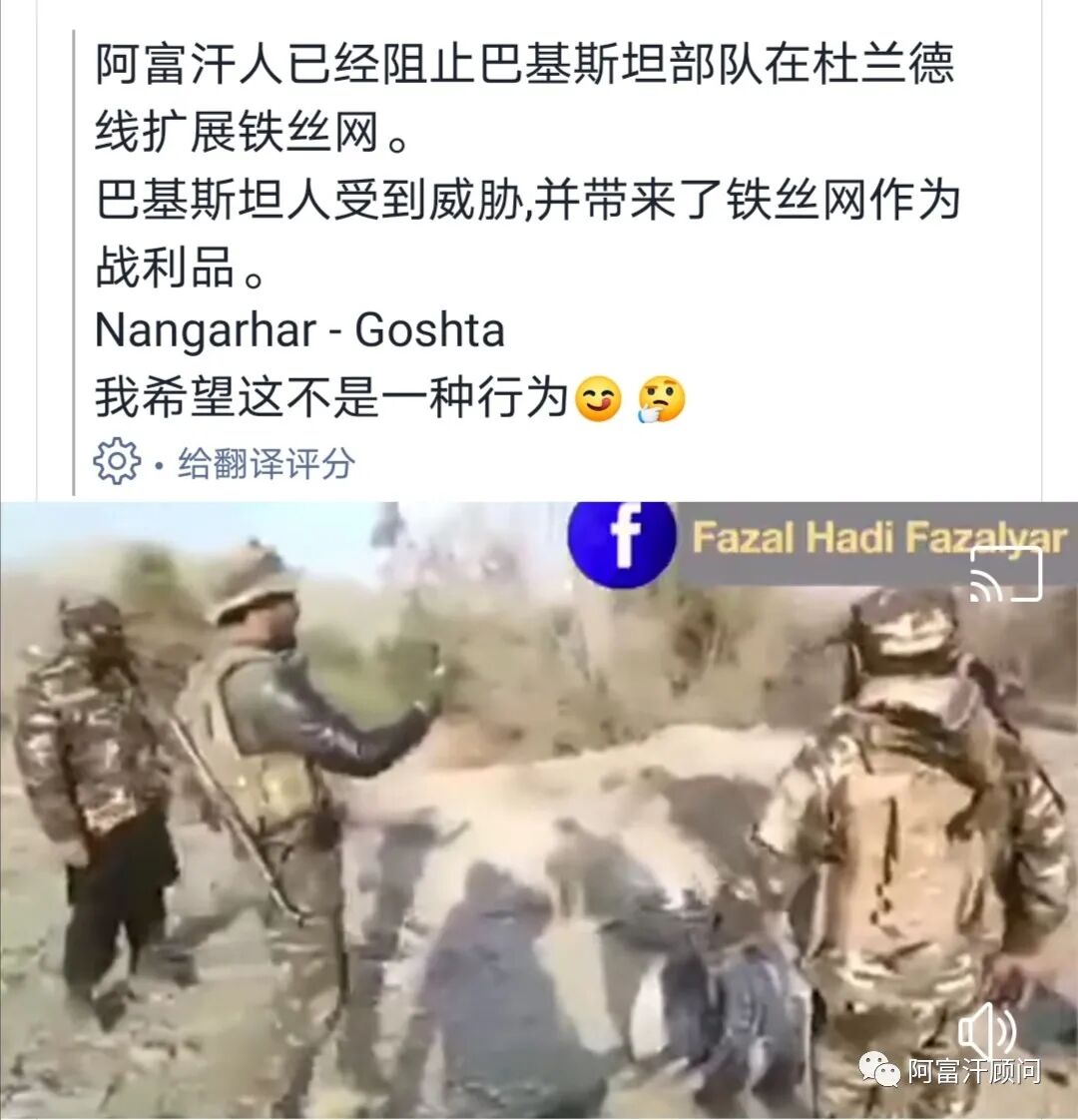 今日多家媒体报道称阿富汗塔利班的部署在东部楠格哈尔省的边境部队阻止巴基斯坦方面扩展建设铁丝网。社交媒体爆料的视频显示,阿富汗当地民众强烈反对巴方建设铁丝网,人为设置栅栏隔离二侧民众的便利往来。