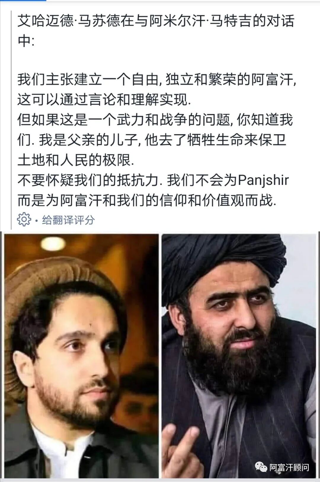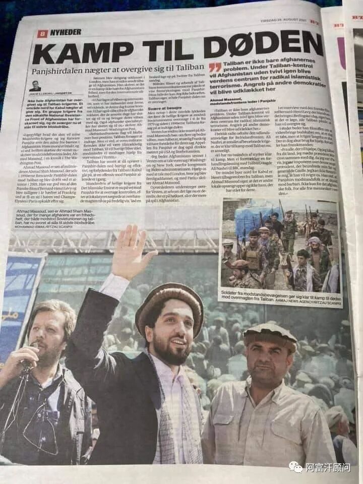 反塔利班的国家抵抗阵线方面,双方谈判还在继续。马苏德呼吁国际社会大力支持,丹麦最流行的报纸辟出二页专版报道战斗头条。抵抗阵线自称从塔吉克斯坦来的新武备已经抵达。