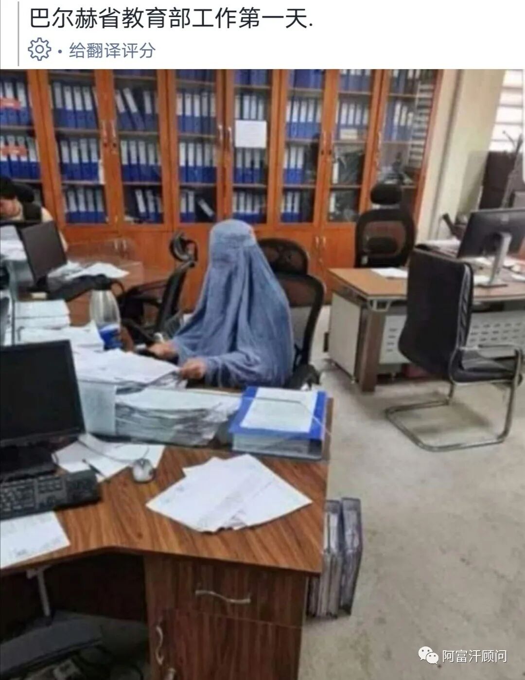 关于阿富汗女权保障,网络上出现了二张性质截然相反的照片很有意思!一个是阿富汗妇女在街头与塔利班的士兵自拍合影。一个是巴尔赫教育厅在办公室恢复上班的第一天,仍然穿着布尔卡!