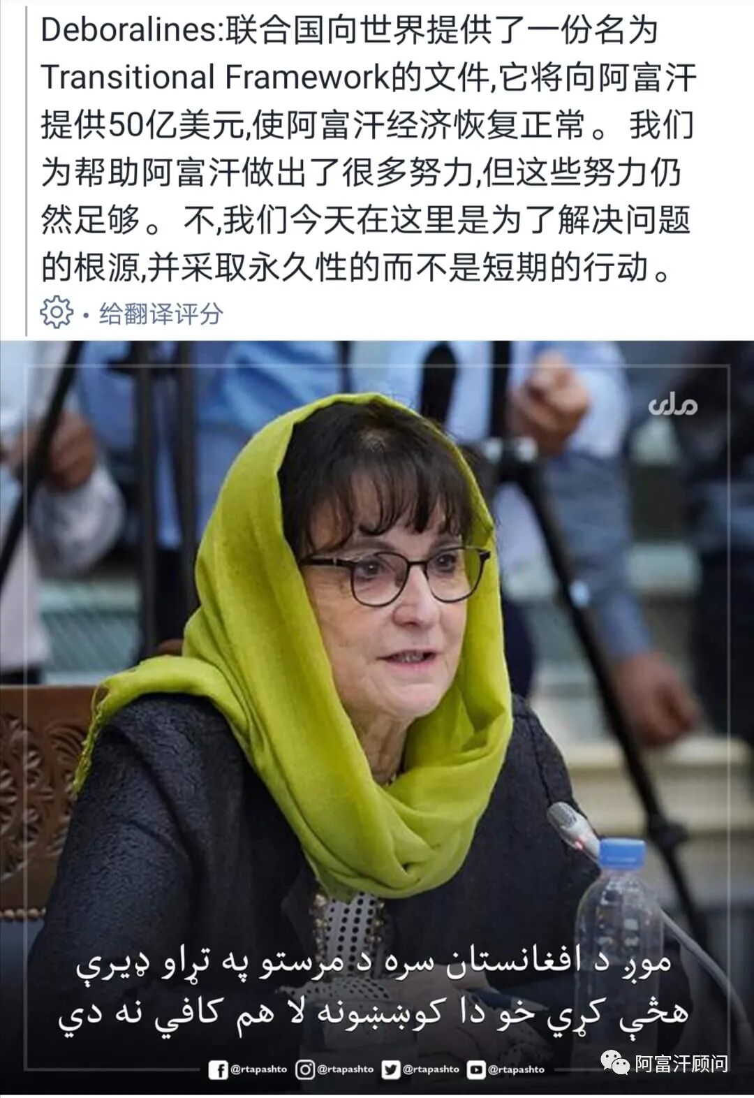 今日,阿富汗塔利班当局召开首次国家经济会议,阿富汗政府总理阿坎德,副总理巴拉达和哈纳菲等高级官员均参加会议。联合国代表Deboralines女士到会并发表讲话。