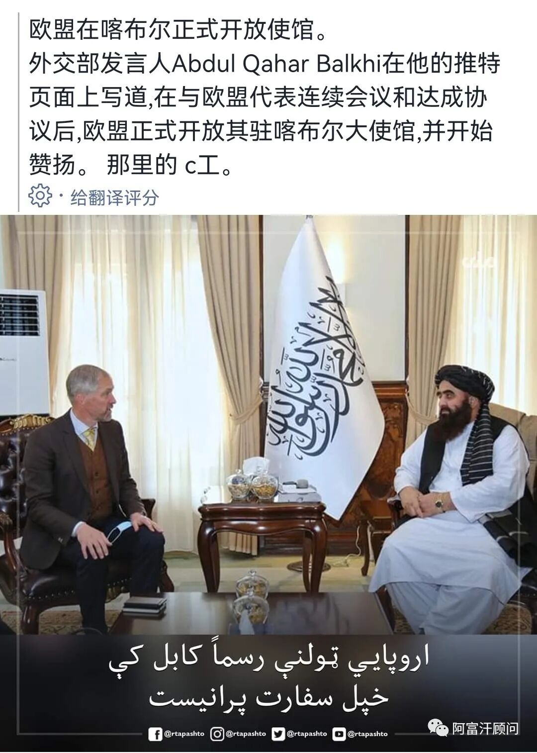 阿富汗塔利班当局召开经济会议后,欧盟表示开放在喀布尔的办事处。