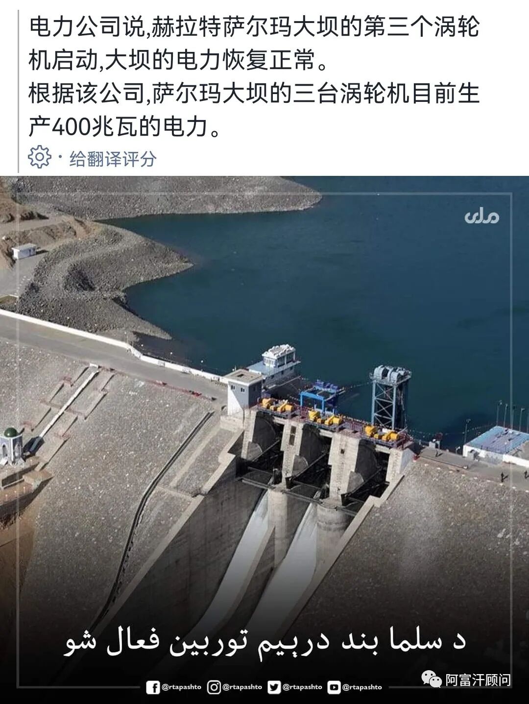 有传言称阿富汗加强了与伊朗边境的警戒力量,并声称要关闭萨玛尔大坝,停止供水给伊朗,以报复伊朗对阿富汗难民的不公正待遇。随后阿官方报道称,萨尔玛大坝正常发电。
