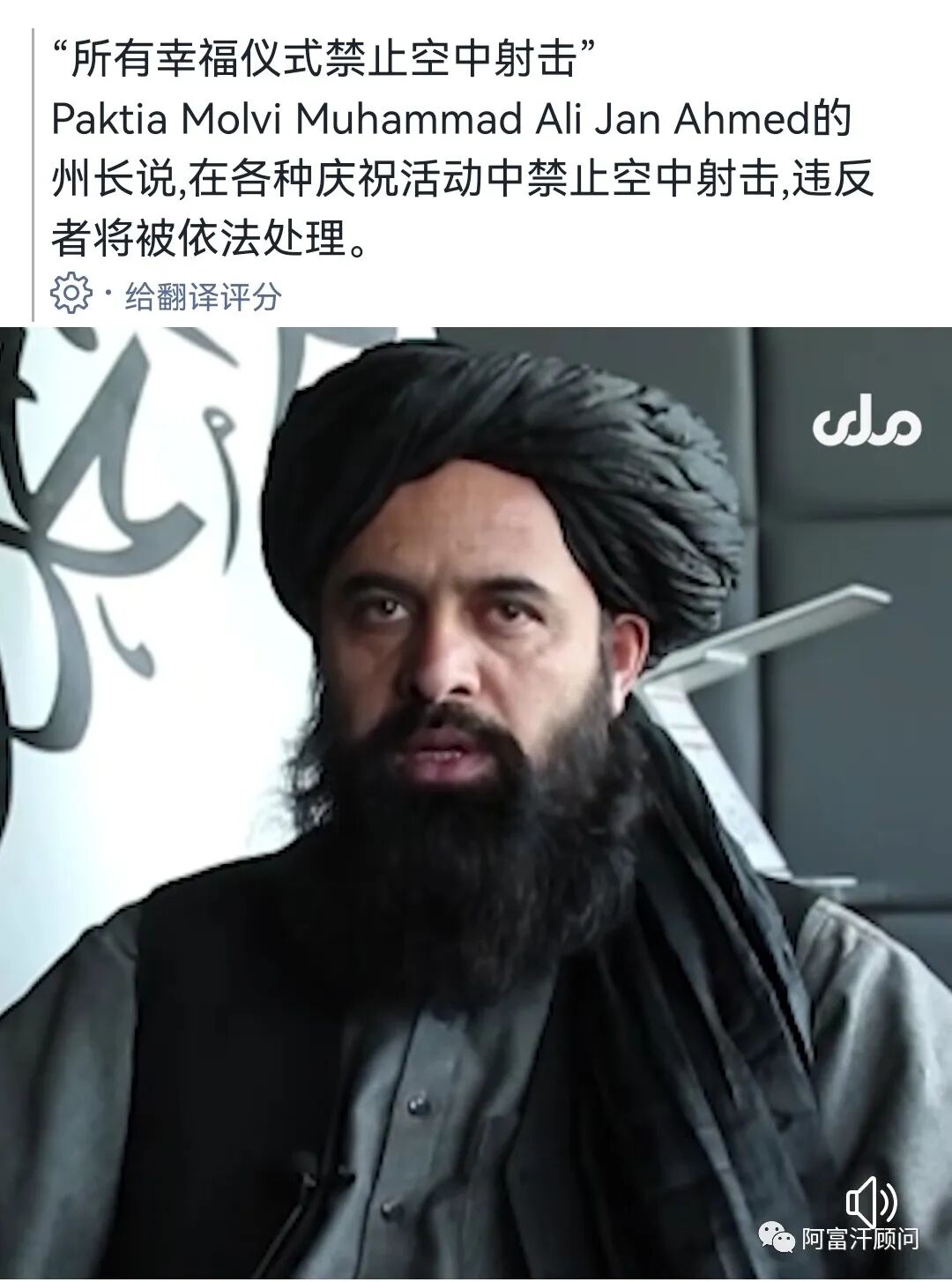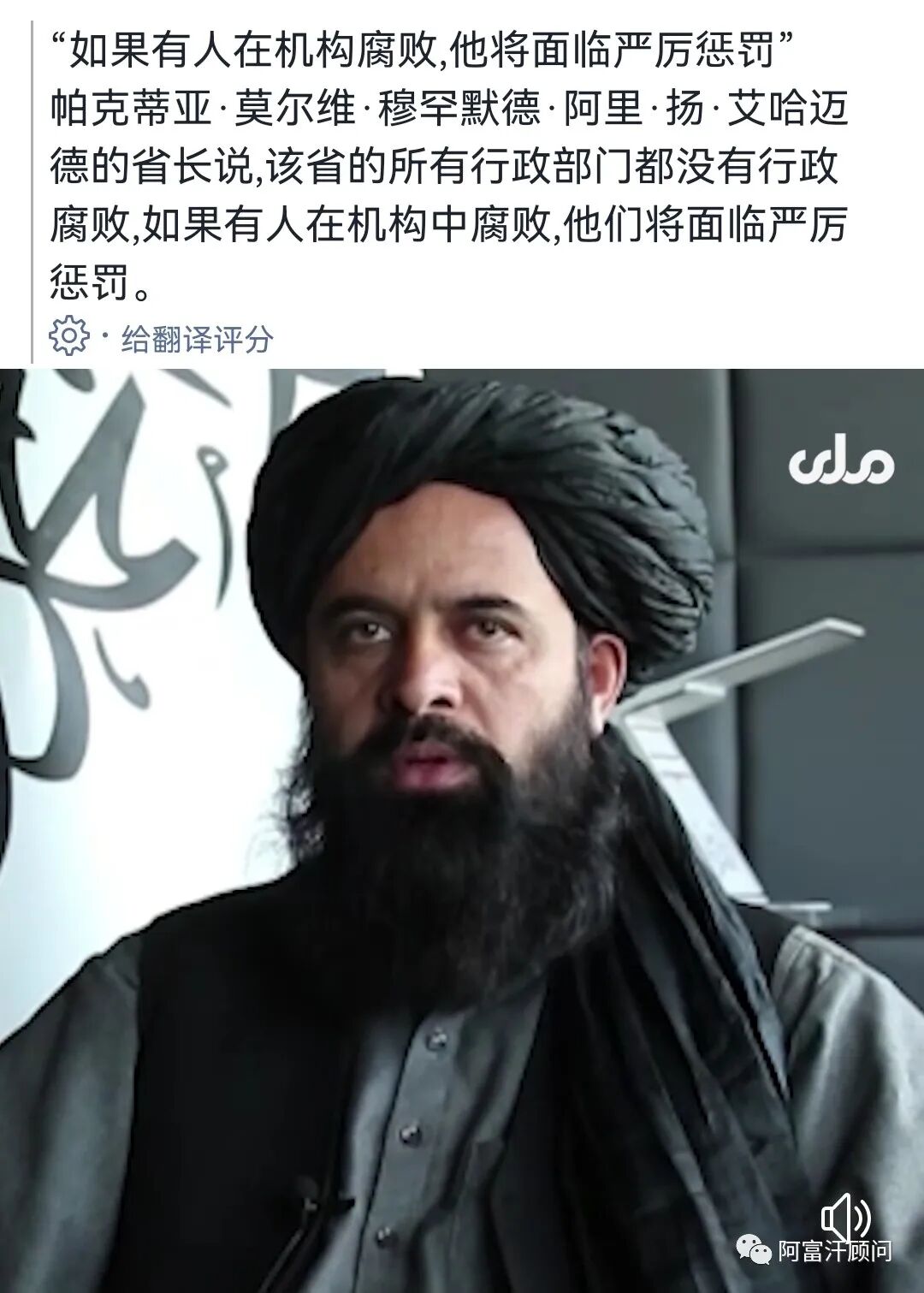 帕克蒂亚省长Molvi Muhammad Ali Jan Ahmed在官媒上表示将严惩腐败:
