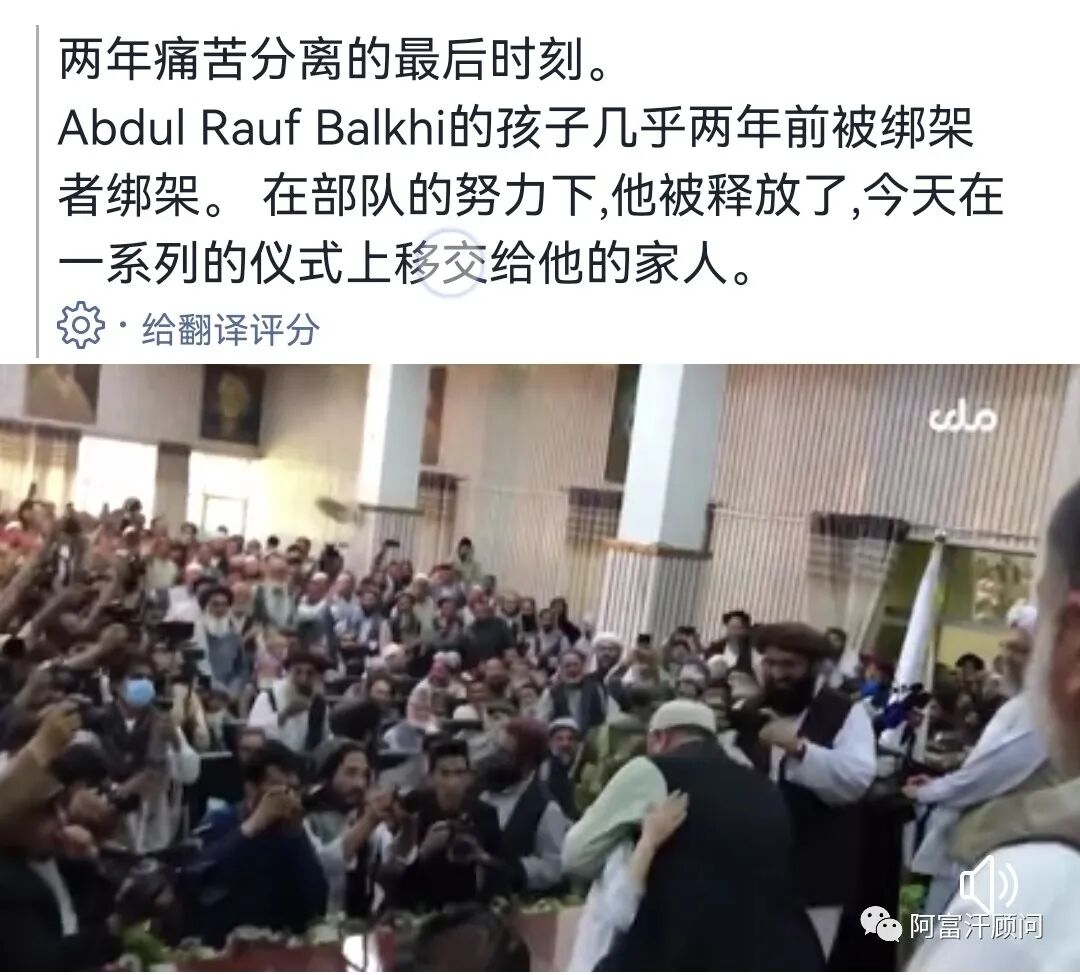 今日,阿富汗当局在北部巴尔赫省成功解救一名遭绑架二年的儿童,当局举行隆重交接仪式,交获救的儿童交还其家人,第二副总理哈纳菲出席仪式。