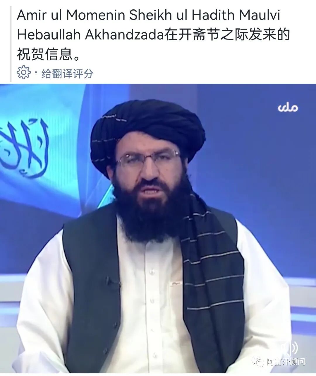 4月29日星期五,阿富汗当局传递塔利班最高领袖海巴图拉.阿洪扎达的开斋节致词。致词以电视台长宣讲形式,并不是录音或者视频,可以理解为阿富汗当局的施政纲领。