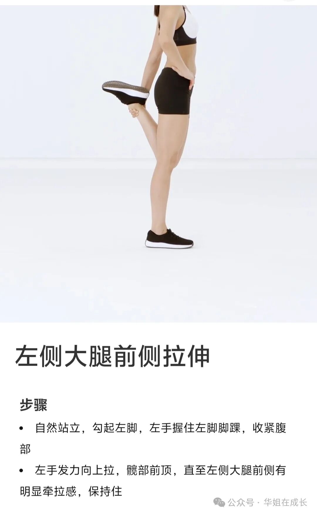 拉伸做的好,下次再跑步时,身体没有感觉,更重要的,担心跑步引起的粗腿在我身上没有出现。