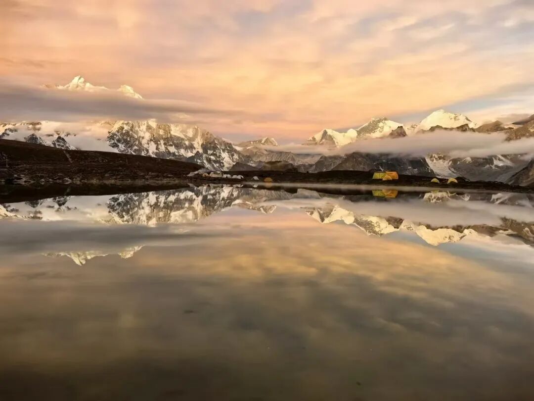 措学仁玛两天一 夜的驻足,如镜面般倒映着四周巍峨雪山,晨曦与黄昏时分,光影交错,风景非震撼两字能形容......