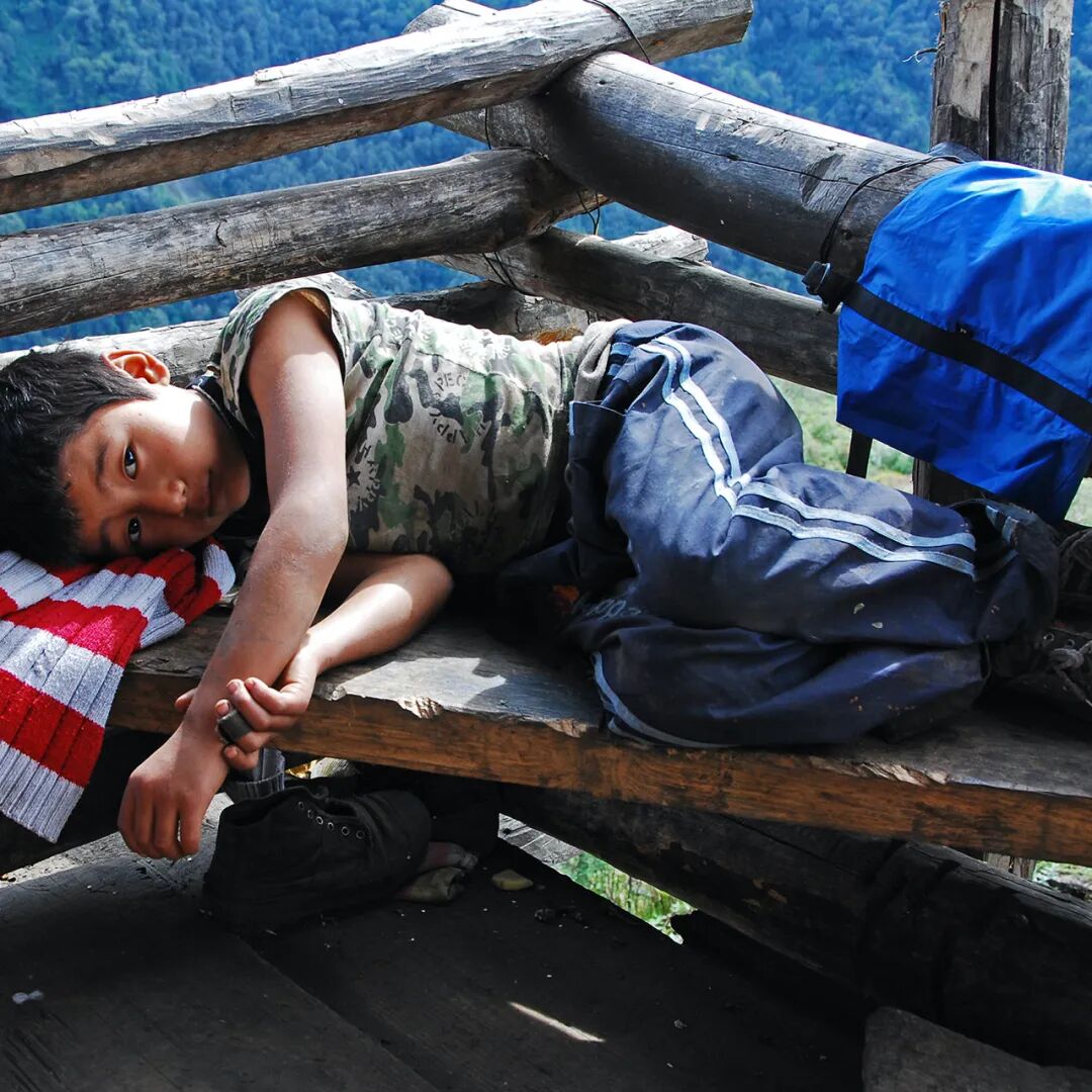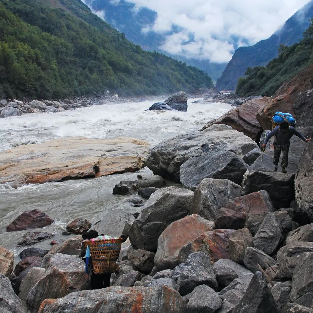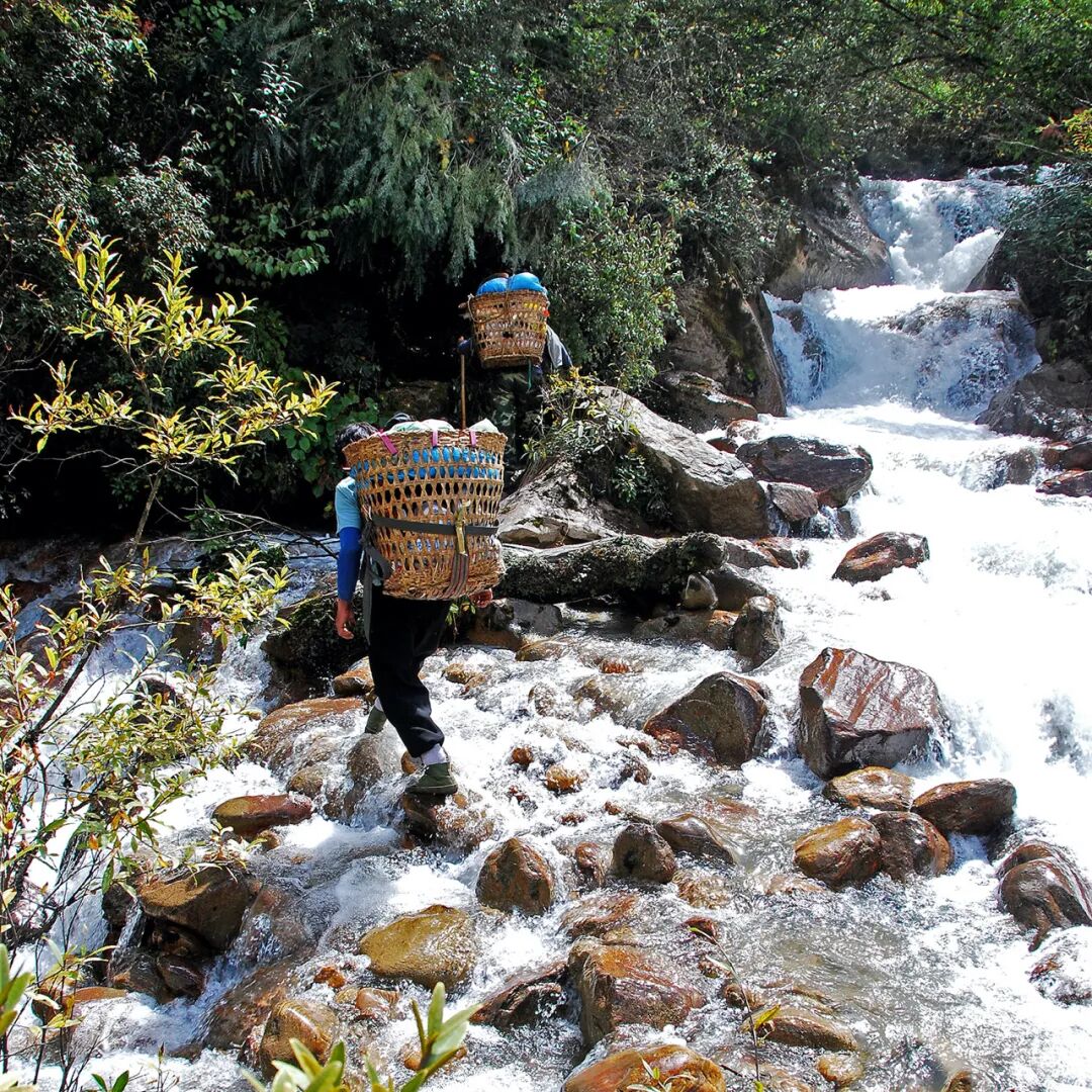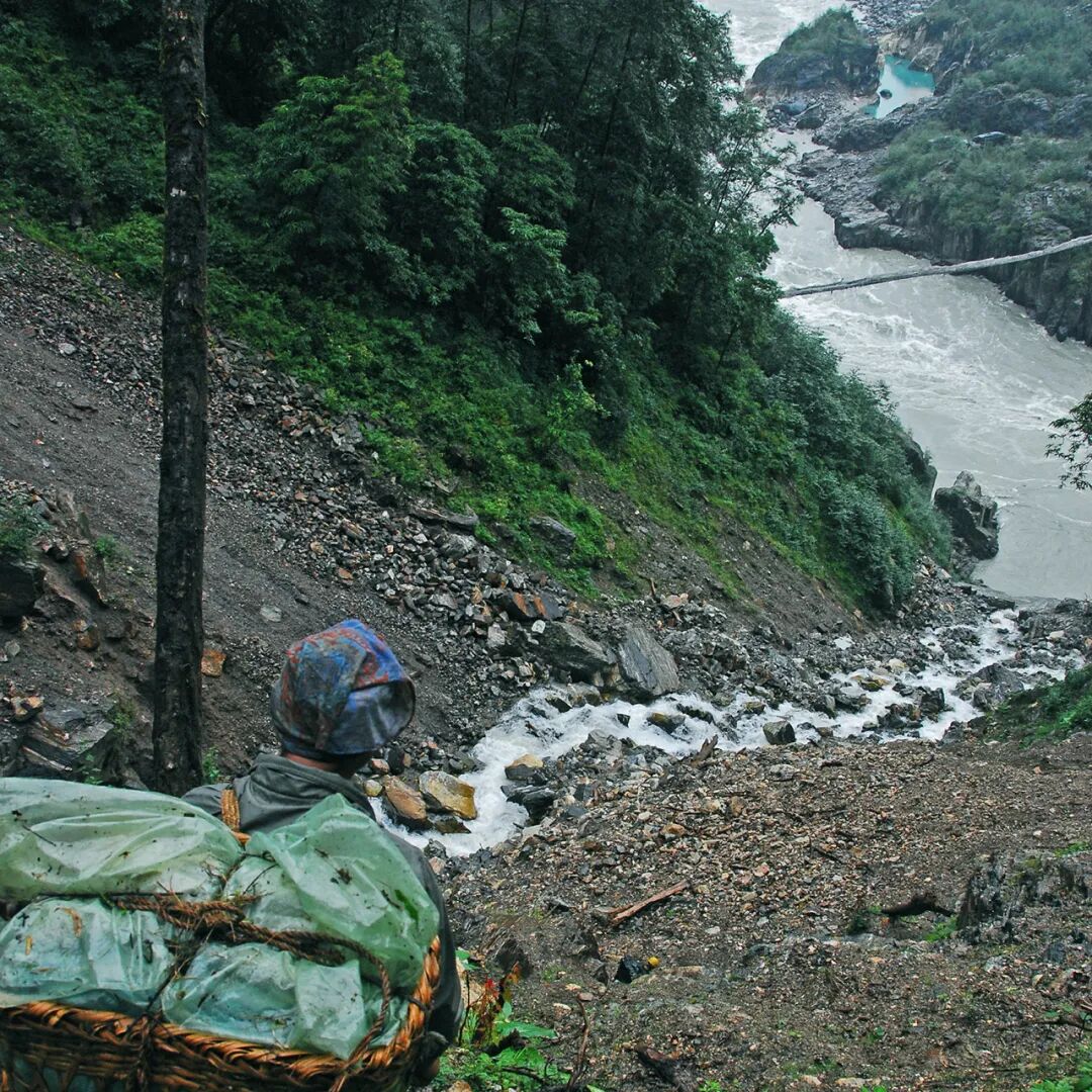先攀升至高处,再顺着一条山涧直下谷底。海拔速降,意味着又来到蚂蟥活跃的气候带。无法摆脱的阴影,好几晚做噩梦都是起身找虫子。