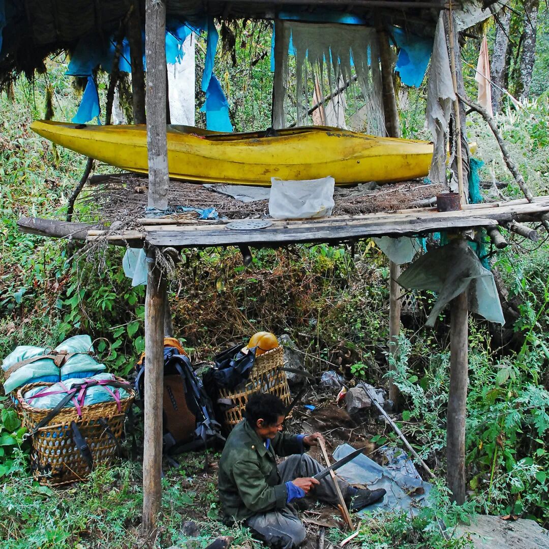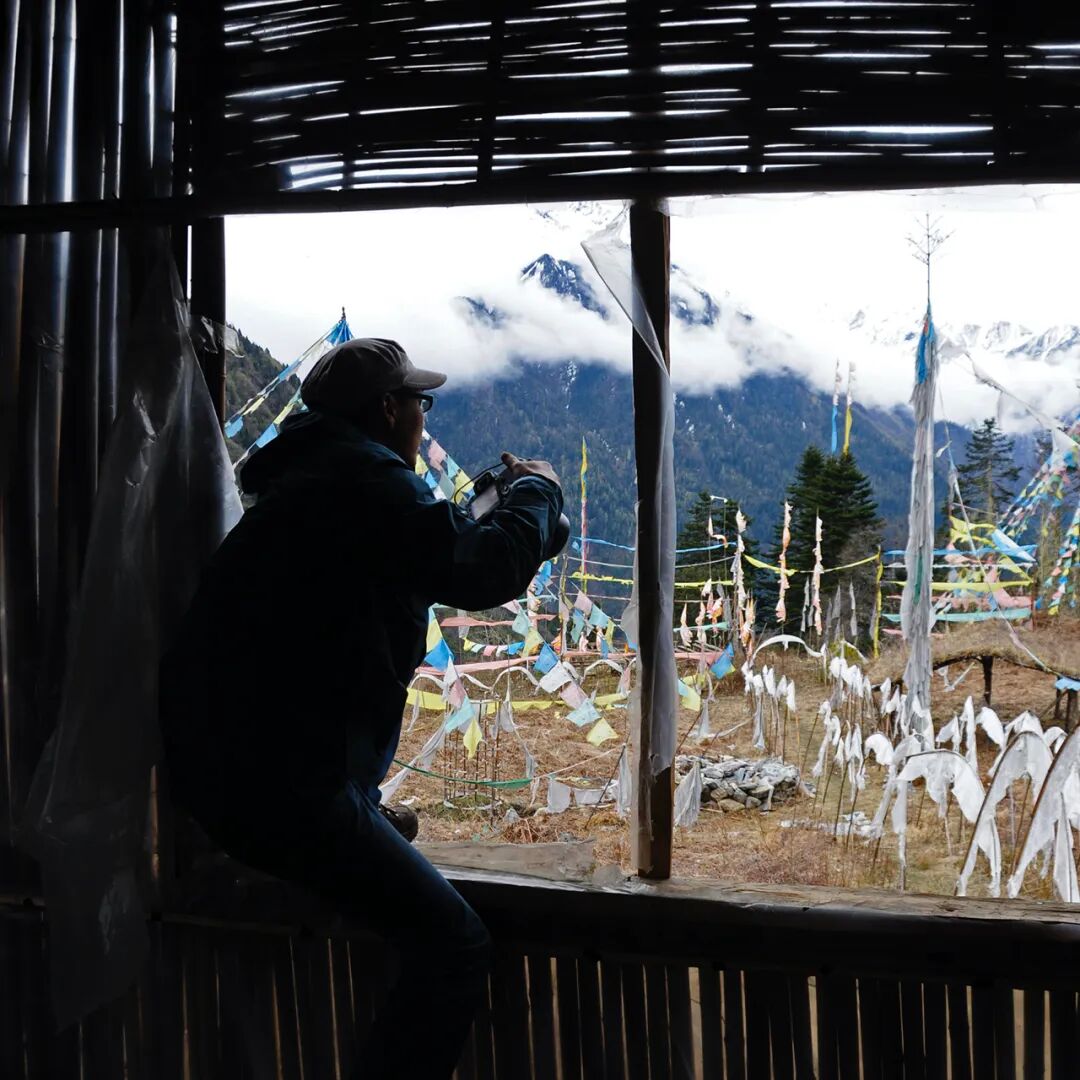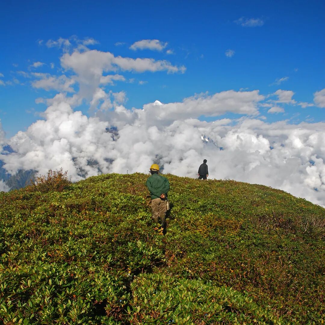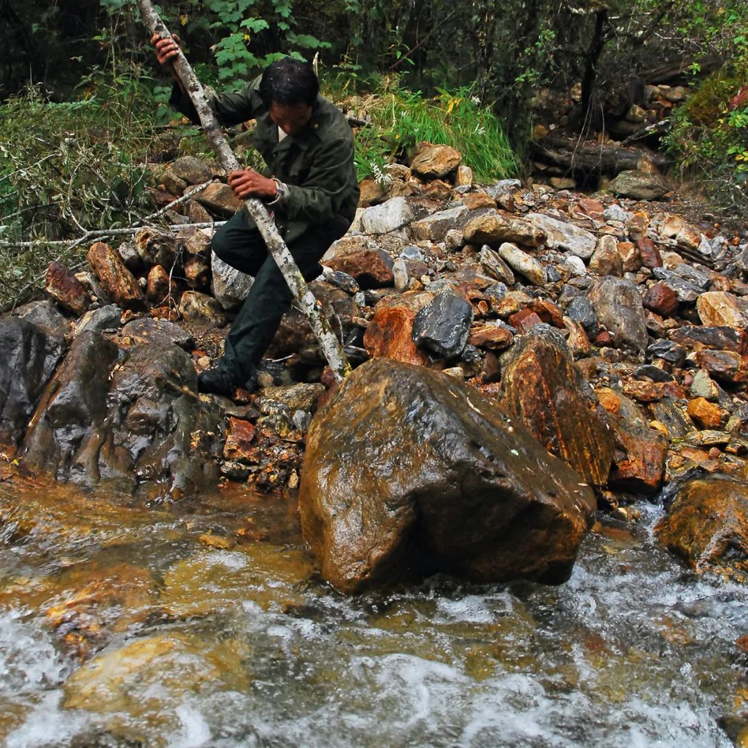 这是我和多杰两个人的旅行,他行路极快,无视跟随的我。在这种一对一的向导关系中,彼此间的博弈更微妙,显然,多杰是碾压级的存在。常常,他在前方密林中穿梭,不见身影,我频频呼喊他的名字,然后根据他的回音判定方向。有时完全没声音,不知是他没听见,还是故意,我就只能靠直觉跟随了。这在弯腰系个鞋带都易迷失的复杂丛林里,实在太难为人了。