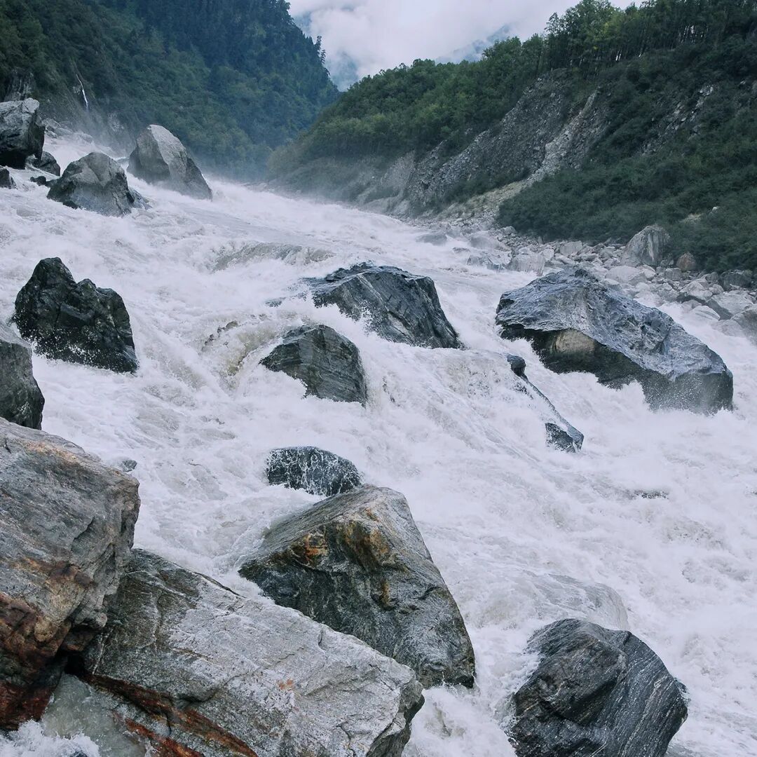 在交错的河流中来回跋涉,上身被雨水浇灌,下身在冷水中浸泡,完全没有预估到此般地貌。看着被雨衣包裹成粽子似的多杰,心里多少都有怨念。