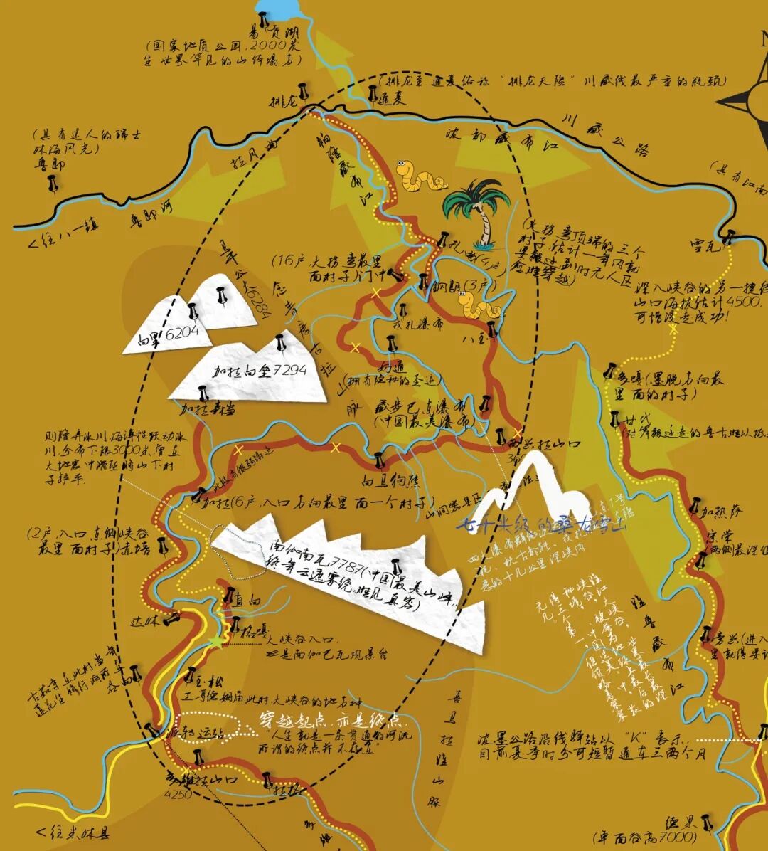 我的旅行计划是深入峡谷核心无人区,找到传说中的大瀑布。以及涉足少有人探访的支线,最终环绕南迦巴瓦大转一圈,逆行“墨脱生死线”回到派,画上一个圆。