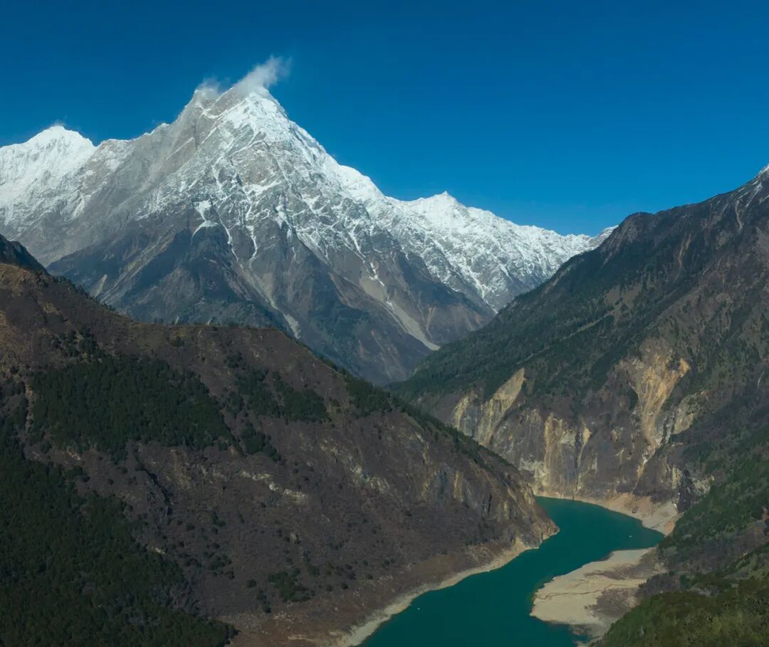 扎曲村位于大拐弯的半山坝子上,散落着几户人家。只有扎曲大拐弯才是真拐弯,具有地理意义。雅鲁藏布冲切两座七千米雪山后在此掉头,环南迦巴瓦南下,奔向汪洋。