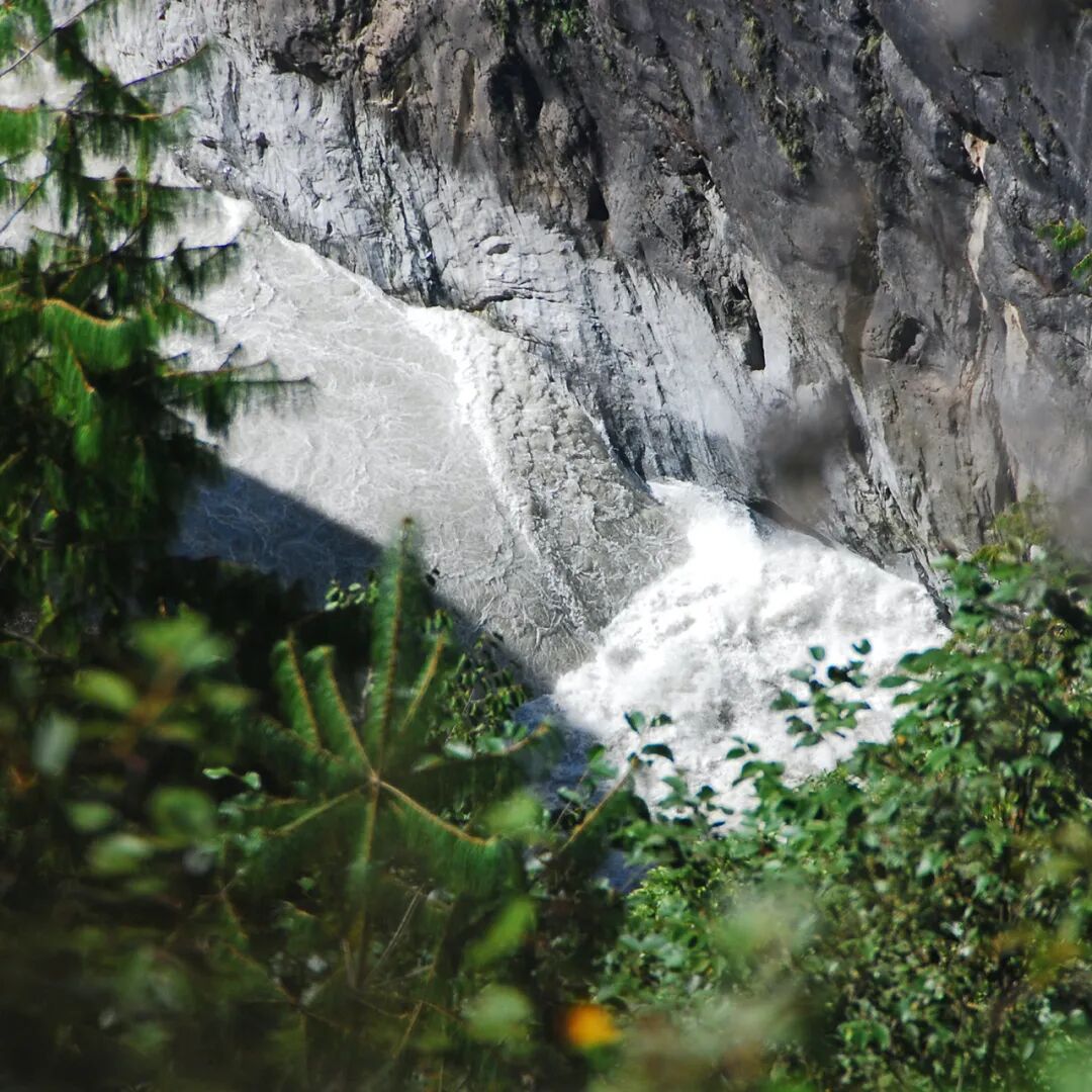 三个确定的瀑布,只有藏布巴东一号能看见正面,二号和绒扎瀑布都是侧上方位置观察。加上水雾弥散,白水滚滚,丰水期的观赏体验是朦胧的,唯有那击穿身体的轰鸣声,成为一生无法磨灭的记忆。