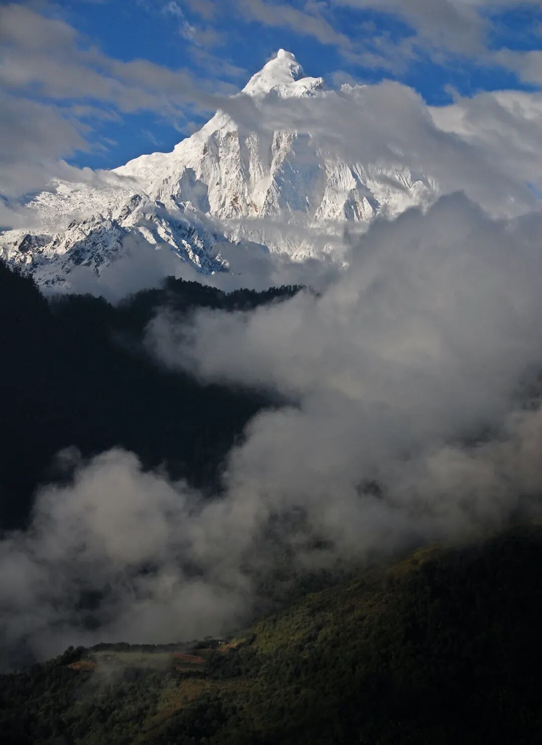 我来到南迦巴瓦脚下的直白村,住在唯一的一家只有一间房的客栈里。老板还收了一百块押金,担心落满油尘的破床头柜被偷。瞧不起谁呢?派有相对好一点的住宿,而我只想离这座神奇的山峰更近些。吃完方便面,入夜,无电,漆黑,狗吠,我坐在门槛上,仰望着月色中仍被浓云深锁的南迦巴瓦,思绪翩翩。一路奔波,稍有喘息。现在回想,我在那干嘛呢?