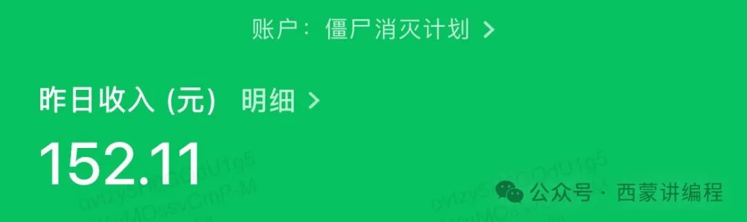 自从我发布了这款游戏之后,现在很多人咨询,一种是想搞个副业,另外一种想all in的。我一般都是劝退all in的,咱们还是要讲公道的,我一直跟他们都说,做这个小游戏只是我兴趣,我并不靠这个吃饭,他们总是不信。那今天我就公布一下《僵尸消灭计划》的某一天的收益。我是那种有一说一的人,从来不装作成熟,会就是会,不会就是不会。对比有些人没有货还遮遮掩掩的🤭