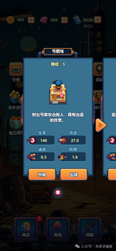 本次默认选手被强制为弓箭塔,另外还有3个塔:狙击塔,电流塔,爆破塔。每种塔都有自己的特色,慢慢去发现和体验吧!