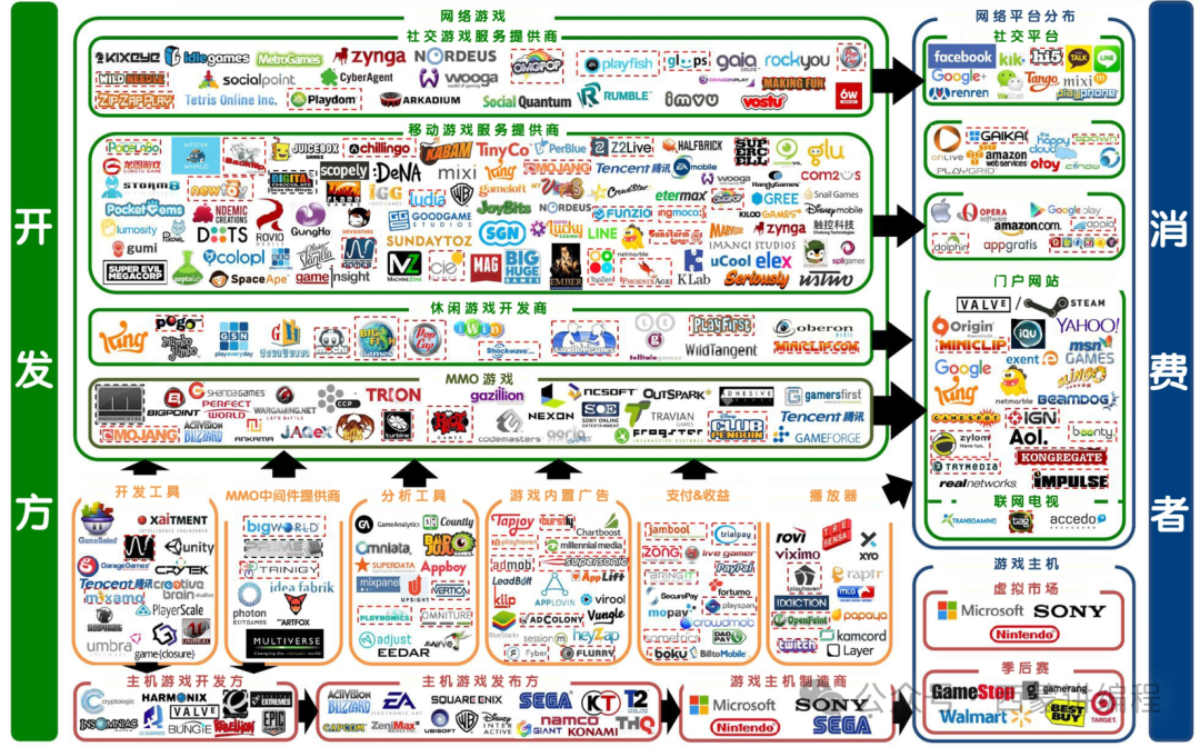 上图来源网络,若有侵权,则立刻删除。主要是想表达,游戏产业非常的庞大,每一个模块都有自己的商业模式和利润空间。