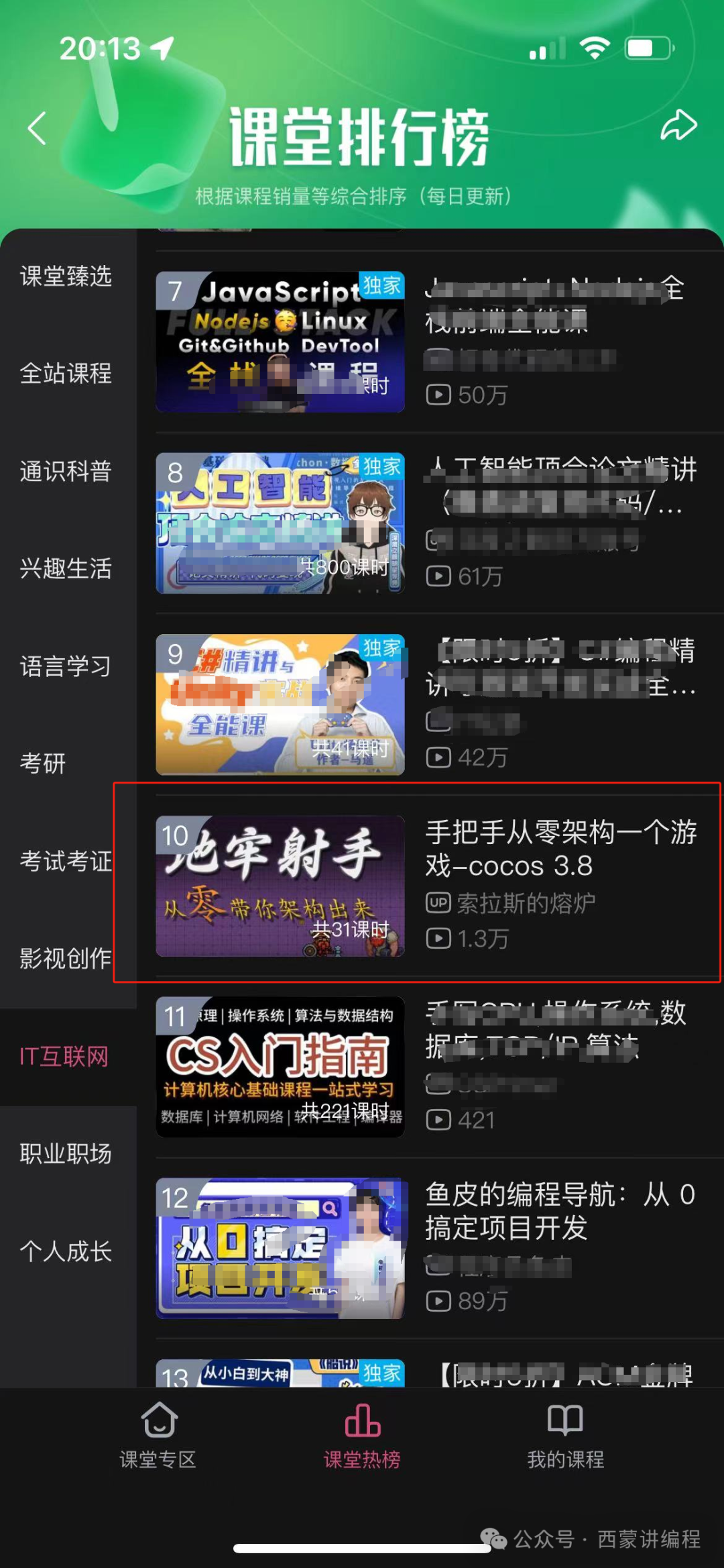 我的VIP课程《地牢射手》上了B站IT互联网热榜课程前10名啦~~