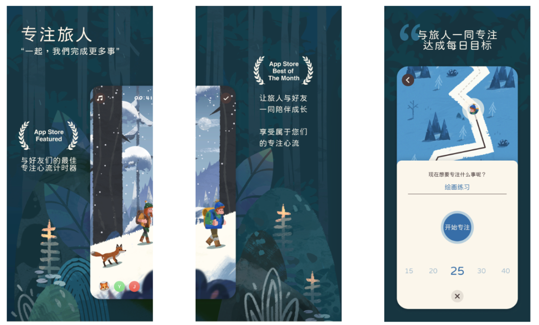 如果要我选,我一定选这款专注旅人作为自己的无痛自律 App。为什么,因为真的唯美小清新以及充满故事感的氛围太打动人了。