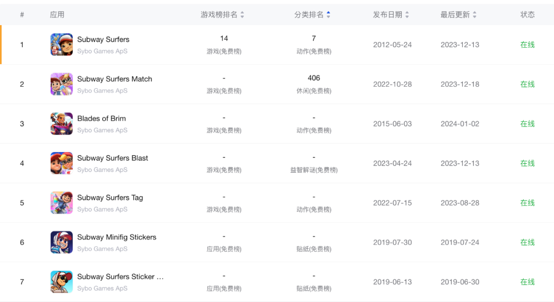 最后,即使什么都做的很好,运气真的是不可或缺的因素。地铁酷跑的公司 Sybo Games ApS 。可以说靠一款游戏吃遍天,但是他们后续推出的作品,还是远远达不到原作的高度。