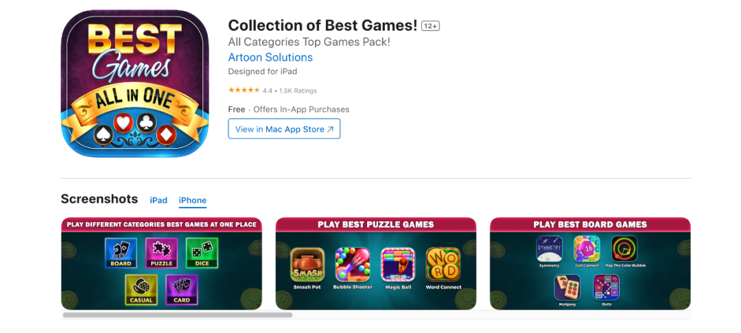 从代码层面,这些合集几乎一模一样,无非是改了个内部的item顺序,所以当苹果开始打击马甲包时,这些游戏合集全部上了 4.3 的耻辱柱。