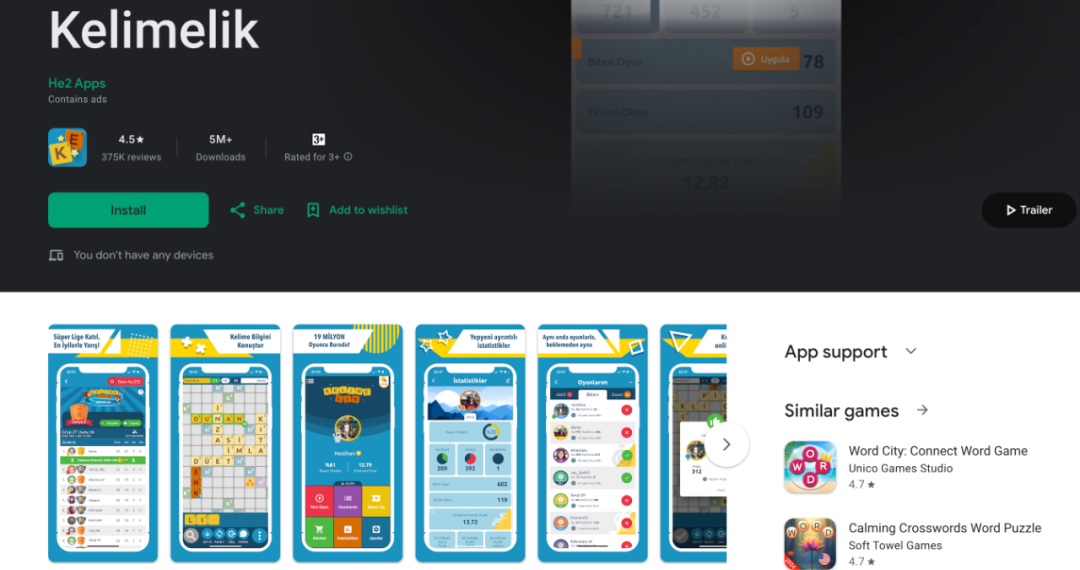 鉴于我之前文章的投票里的统计可以得出一个结论,就是开发者对很多不熟悉的东西,很大程度更倾向于做观望党,为了给观望党一些实际案例,这里贴一个基于 Flutter 做的典型游戏案例。下面这个叫 Kelimelik 的游戏:
