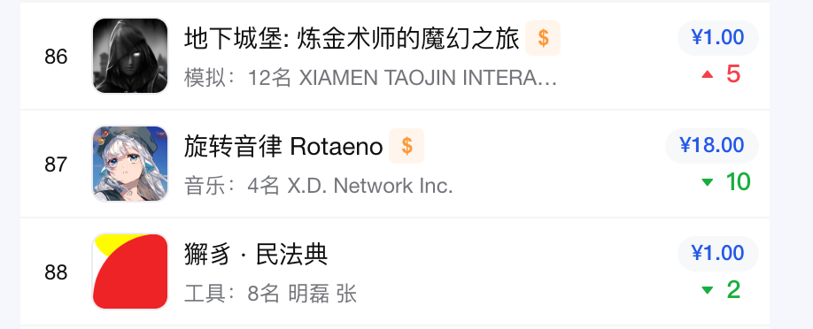 就在我写这一篇的时候,【獬豸 · 民法典】在付费榜的排行已经跌到 88 名了。
