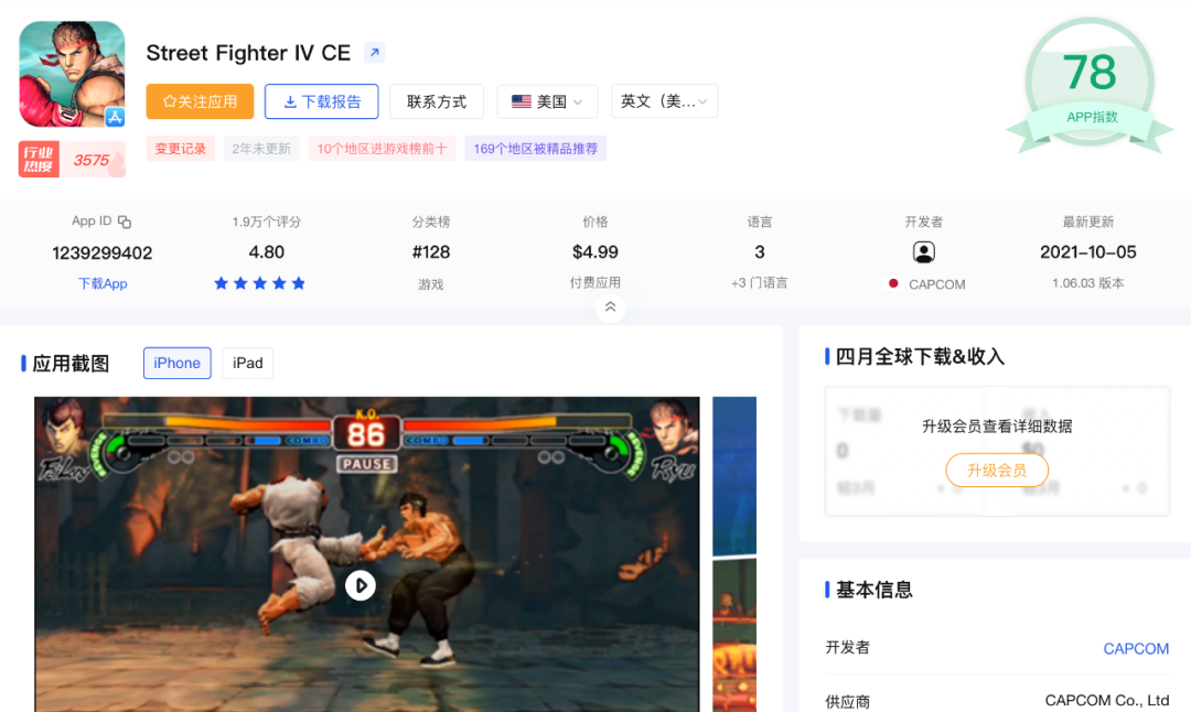 传统游戏厂商卡普空的传统精品游戏街头霸王IV,售价也只是 4.99 刀,而在 PC 上的 steam 他可以卖上百块。