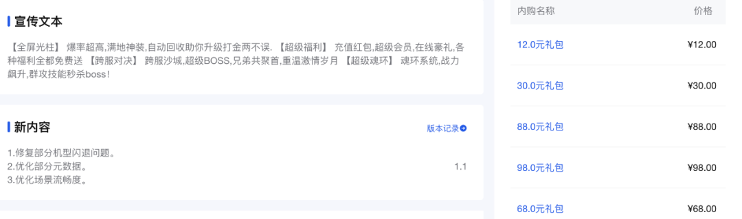 这两款一元产品的共性是,都包含了内购。他们的核心收益必然不是来自这区区一元了,而是来自内购里的大礼包。