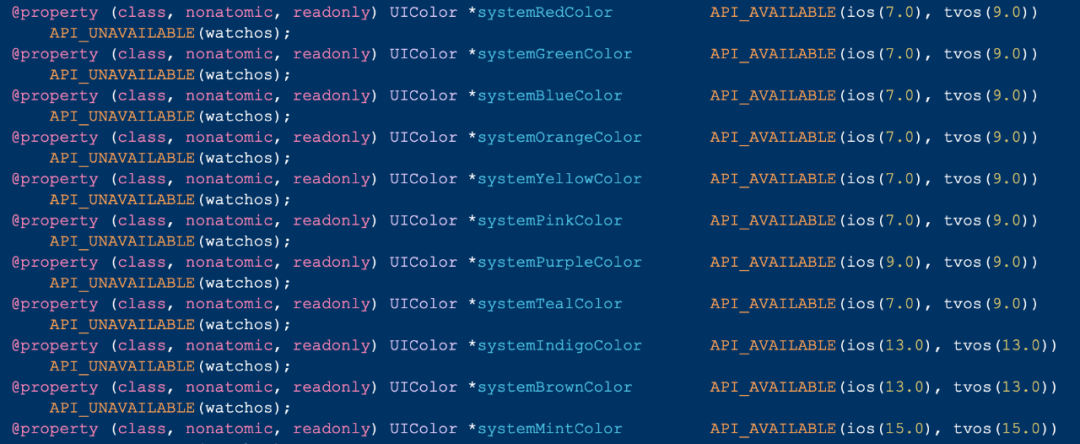 在 iOS 的 UIKit 中就给开发者提供了各式各样的系统级颜色。