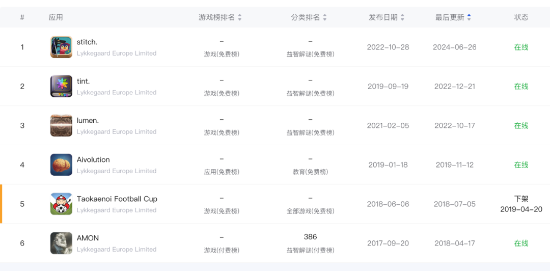 开发团队叫 Lykkegaard Europe Limited,一个来自泰国的团队(起码开发者注册信息是)。从旗下作品可以看出,过去曾经差不多是一年做一款产品的节奏在发布游戏。