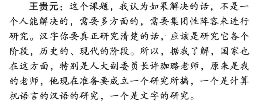 王贵元说:“「搞汉字研究,不搞的人看来很枯燥,但就我们本身来说其乐无穷。」”