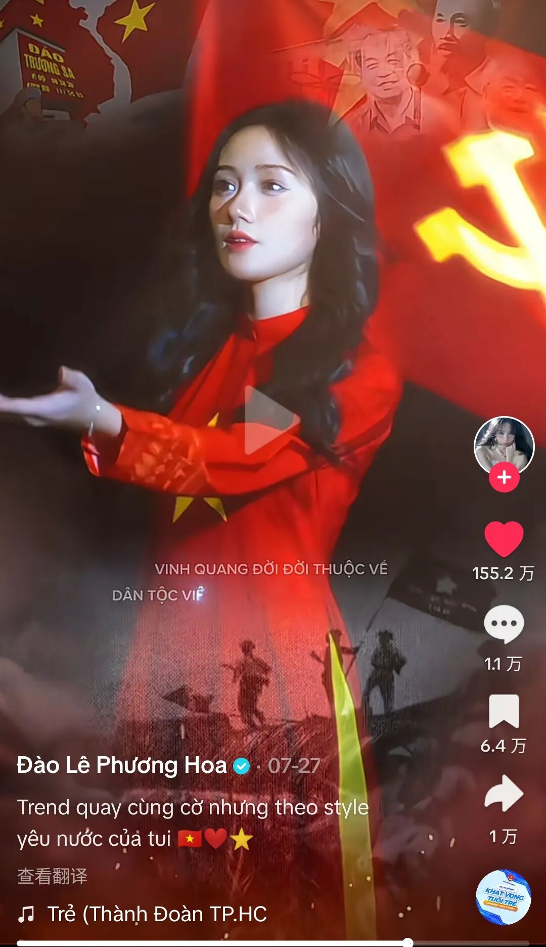 这种趋势出现在7月底,带有表达爱国主义、民族自豪感和庆祝9月2日国庆节的想法。每个视频分享下的网络用户的实施过程,都吸引了数十万的点赞和评论。