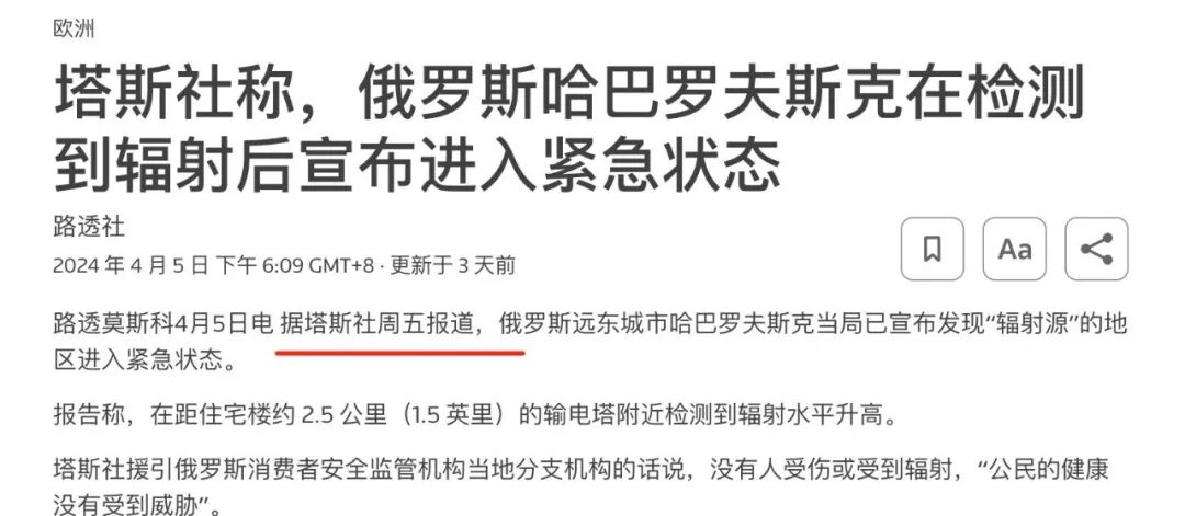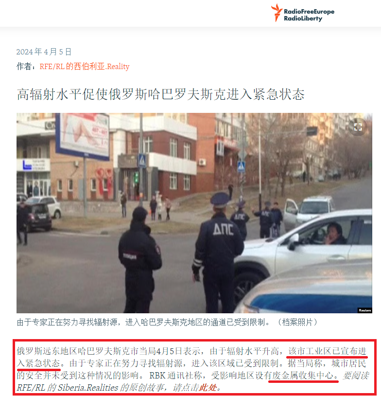 哈巴罗夫斯克确实检测到异常核辐射并且进入紧急状态,但是进入紧急状态的仅仅是发现核辐射的工业区。