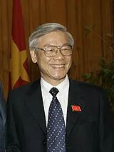 在2021年举行的第十三次全国代表大会上,他再次当选为总书记,成为越南继胡志明和黎笋之后第三位连任的领导人,由阮春福接任国家主席。