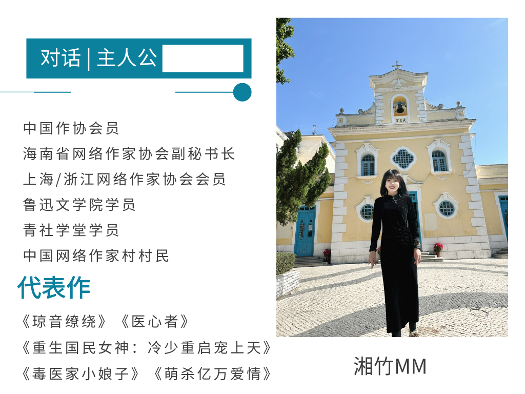 湘竹MM:网络作家比较擅长“讲故事”,所以网络作家创作的现实题材,其实会更兼具故事性和趣味性,而这网络文学的平台上,往往能让更多现实题材的好故事,更好地传播正能量。我已经创作了《医心者》《琼音缭绕》两部现实题材的作品,未来还有现实题材创作的计划。