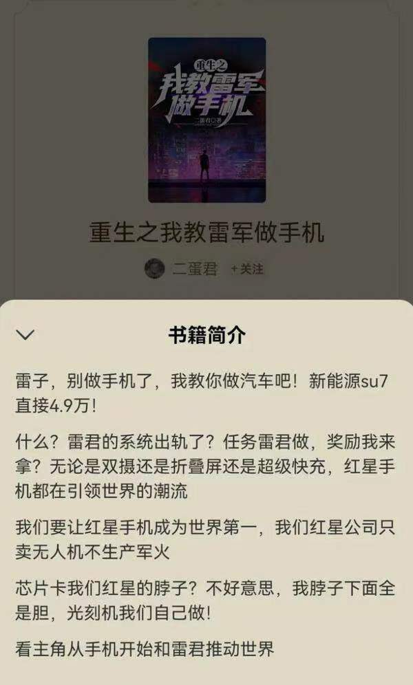 你是否想过,如果你能回到过去,你会做些什么?或许你会想改变自己的命运,或者改变世界的历史。但是,有一位网文作者,他的愿望是教雷军做手机。是的,你没有听错。这位作者的名字叫做二蛋君,他发布了一本名为《重生之我教雷军做手机》的网络小说。