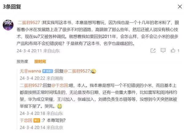 他目睹了小米在成长过程中所遇到的各种困难和挑战,如高端市场定位的挣扎,以及被质疑缺乏核心技术等。因此,他设想如果自己能回到2011年,是否能帮助小米避免这些错误,让小米成为一个更加强大和成功的公司。于是,他就有了写这本小说的想法,名字也是随便起的,没有任何深意。