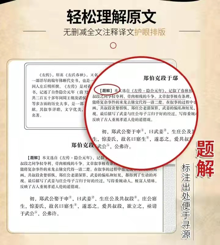《郑伯克段于鄢》《曹刿论战》《烛之武退秦师》《公羊传》《楚辞》等广为流传的传统篇目。