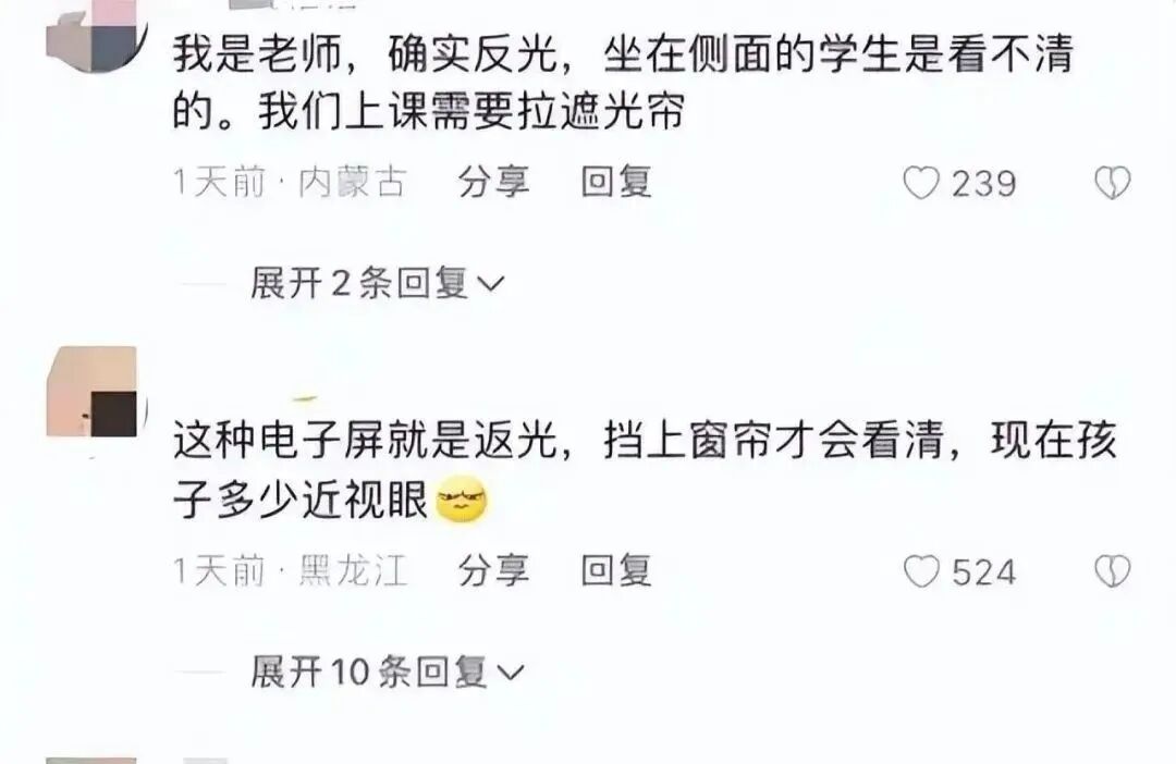任教的陈老师发现这个情况后,自己实地体验了一下。发现屏幕反光的确十分严重,大部分学生都看不清屏幕。陈老师找到引起该现象的原因,发现是因为教室里没有窗帘。阳光从两个大大的窗户里透进来,导致屏幕反光,影响了学生观看。