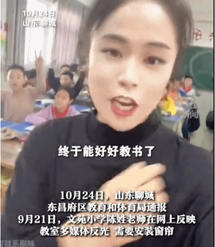 陈老师期间多次向领导反映情况,但问题一直没有得到解决。最终,陈老师将黑板反光拍摄成视频,发布到了网上。没想到,视频在网上引发热议后。领导首先做的,不是赶紧解决问题,而是解决提出问题的“陈老师”!