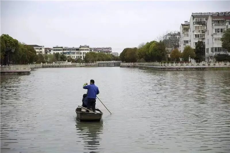 在大淖水上撑船的人。如今,此景已经难见。在汪曾祺的《大淖记事》里,这里曾是城乡商业活动的密集地(张雷 摄)