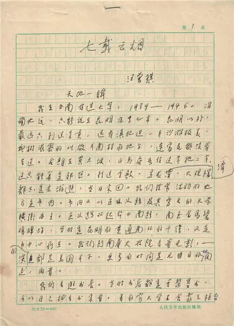 汪曾祺手稿