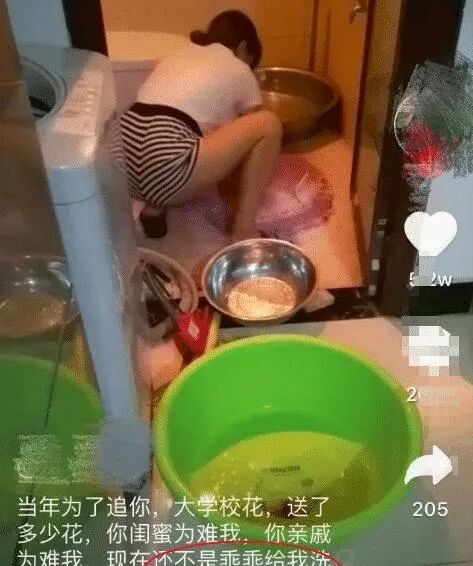 网上有这样一段短视频,视频中一名衣着蓬乱的女子蹲在地上洗衣服。