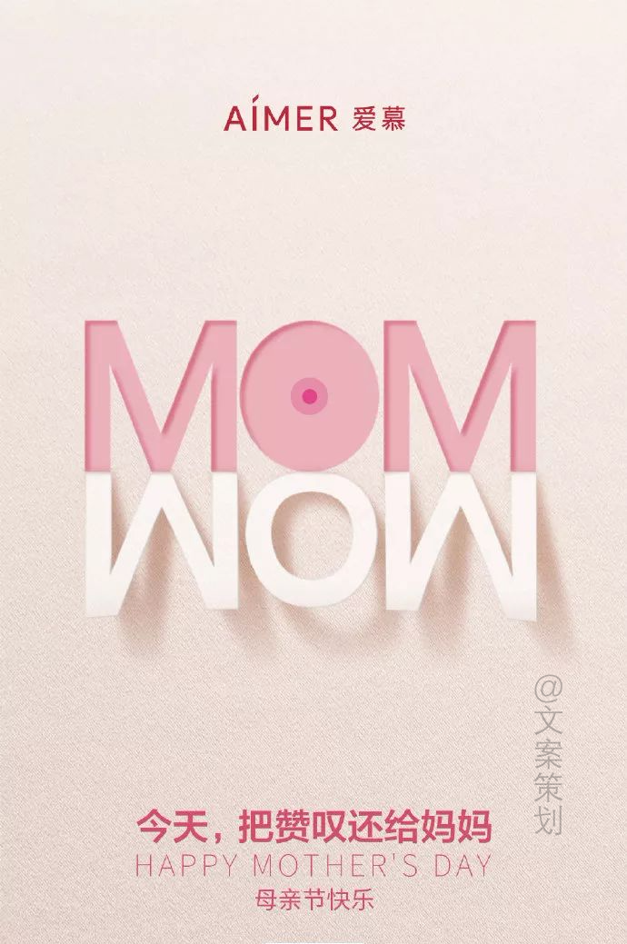 文案通过巧妙的构思,将妈妈的英文MOM转化成了WOW,以此来对应想要传达的意境,即母亲节我们需要勇敢表达出我们对母亲的爱。