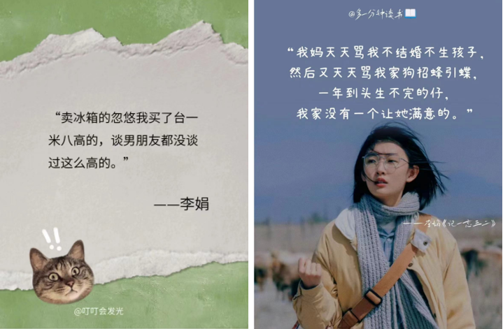 同时,经细心网友考据,李娟老师其实不但不是那么“严肃”,而且,简直是个段子手,在生活段子领域,一骑绝尘,比如……