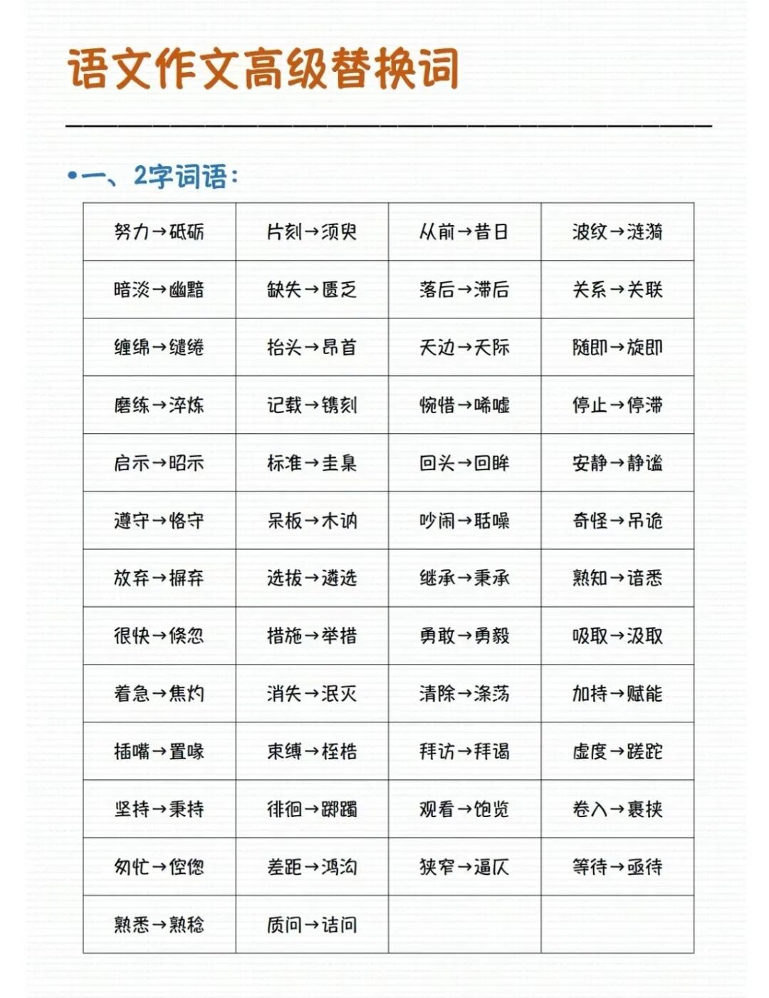 高考语文作文必备的【高级替换词】,作文更有文采!
