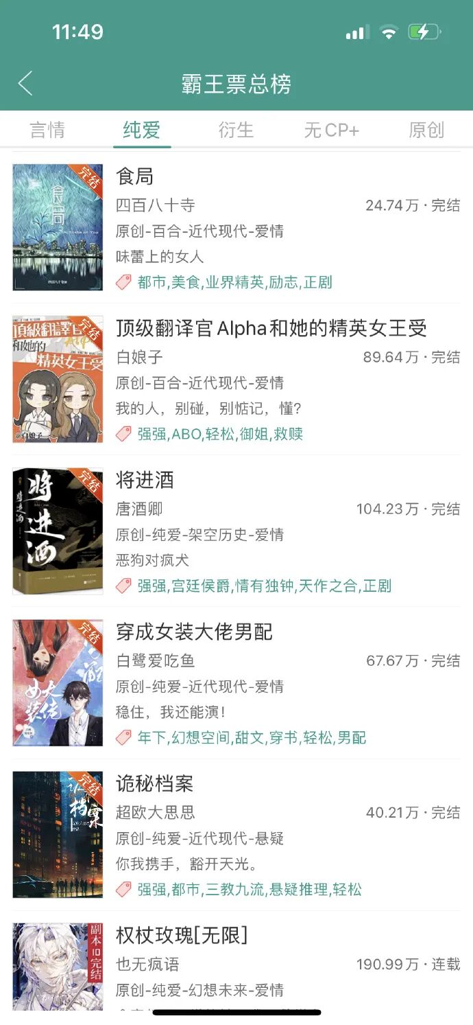 4. 更新速度:晋江的作者和作品更新速度快,很多小说都是连载状态,这让读者可以持续跟进故事进展。